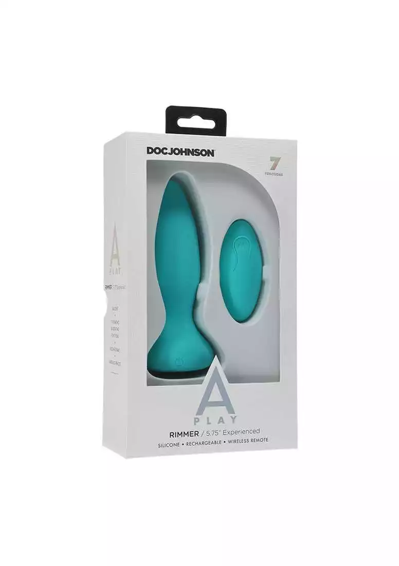 The 7-function Rimmer’s large size delivers the perfect feeling of fullness, and combines 2 stimulating features to give users the ultimate back door pleasure. The insertable section vibrates as powerful spinning ridges along the stem tease and massage the sensitive anal entry point. The Rimmer is conveniently controlled directly on the product or via the included wireless remote. A-Play is Doc Johnson’s high-end line of performance anal plugs, created with a variety of sizes and special features to promote anal pleasure and exploration for users of every experience level. Each product in the A-Play collection is USB-rechargeable, water-resistant, and includes a charging cable and fabric storage bag.