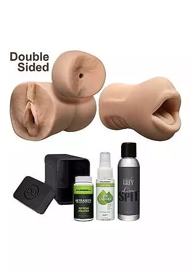 Legendary porn star and mainstream darling Sasha Grey?s pussy ass and mouth are famous for taking scene after scene of extreme poundings and hot loads. Now Sasha offers you every one of her insatiable holes in this deluxe kit containing everything you need to fuck her hard and deep. We molded Sasha?s 2 Fuckhole Masturbator directly from the adult superstar?s juicy pussy and tight asshole and the Deep Throat Pocket Pal from her notoriously seductive mouth in lifelike ULTRASKYN– perfect for use with Sasha?s realistic Love Spit glide! The enclosed Doc Johnson Natural Toy Cleaner ULTRASKYN Refresh Powder and discreet storage box ensure that she?s fresh clean and ready to go whenever you need her.