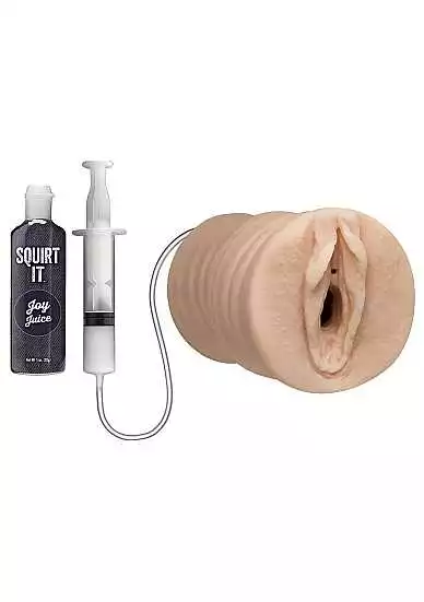 Your wettest and wildest fantasies are now in the palm of your hand with this ultra-lifelike squirting pussy stroker! Made of our incredibly lifelike ULTRASKYN ? material the Squirt It masturbator squirts on command thanks to an easy-to-fill syringe and a 1 fl. oz. bottle of realistic Joy Juice. Squirt It also features a tight pleasure tunnel with plush internal ribbing for even more pleasure. When youre ready just squeeze the attached squirt syringe to flood the Squirt It and yourself with sweet pussy juice. Open-ended design makes cleanup a breeze. Each Squirt It includes a 1 fl. oz. bottle of Joy Juice Doc Johnsons special formulation made specifically for use with our squirting pussy masturbators. – Handcrafted from ULTRASKYN ? for The Ultimate Feel – Easy Handheld Syringe Squirts on Command – Lifelike Details and Tight Interior – 1 fl. oz. Joy Juice Included – Phthalate-Free Body-Safe