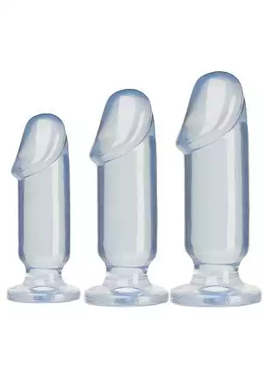 Anaal Starter Kit – Transparent – Work your way up to backdoor bliss, with the Crystal Jellies Anal Starter Kit! Perfect for beginners, each plug features a flat comfortable base for easy wearability, while the pronounced head and smooth shaft is sure to make for some jellie jammin’ satisfaction! The small plug is 1″ in width with a 3″ usable length, medium is 1.5″ in width with a 4″ usable length, while large offers a 2″ width with a 5″ usable length. These jellies can be worn alone or used with any o-ring compatible harness. Available in Pink, Clear, and Purple.