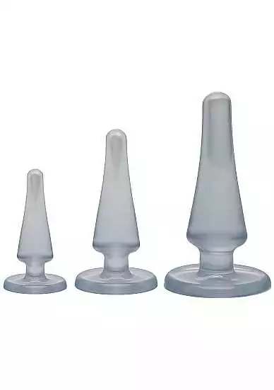 The Crystal Jellies Anal Initiation Kit allows beginners to ease into backdoor play while enjoying each stage of intensity and fullness. Three classic plugs in smooth body-safe material sized at one-inch intervals offer progressive levels of sensation while flared bases and a firm yet flexible feel ensure safe and versatile fun. Experienced backdoor enthusiasts can also enjoy this set as the warm-up for a night of more extreme intimate exploration – Three Sizes for Gradual Training – Flared Bases for Safe Use – Soft Pliable Material – Phthalate-Free Body-Safe