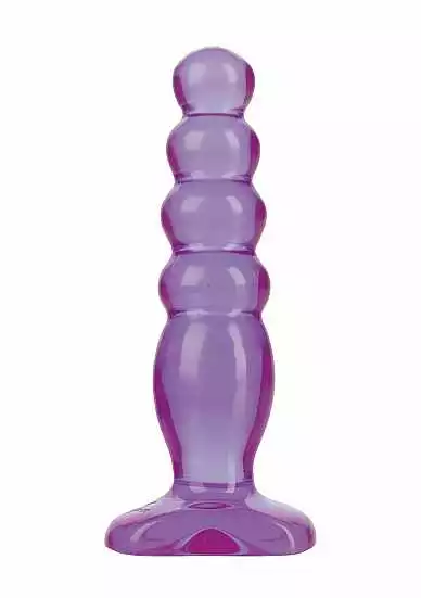 Doc Johnsons Crystal Jellies 5 Anal Delight is a soft and flexible graduated anal plug. Bounce on the bubbles or use the flared base as a handle to simulate anal beads. Rounded for ease of insertion each bubbled tier promises a memorable experience. Available in Pink Clear and Purple. Made from phthalate-free body safe material and is Proudly Made in America