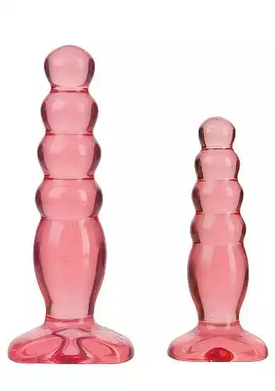 Explore your backdoor with confidence! With a and medium plug the Crystal Jellies Anal Trainer Kit is the perfect fit for anal play beginners. The small plug features 4 of insertable length and the large plug features 6 of insertable length. These plugs feature a wide flared base for safe and comfortable anal play. Crystal Jellies are made from phthalate-free body safe material. Proudly Made in America.