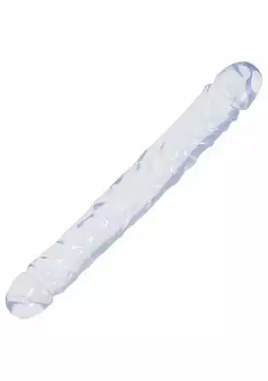 Doc Johnsons 12 Crystal Jellies JR. Double Dong is a soft and flexible variation of the original dong that started it all. This double-ended cock has the traditional thickness and veiny texture we all know and love plus a flexible shaft and glistening color options! Available in Pink Clear and Purple. All of our Crystal Jellies are from non-phthalate body-safe material which includes Docs antibacterial Sil-A-Gel formula and are proudly made in America.
