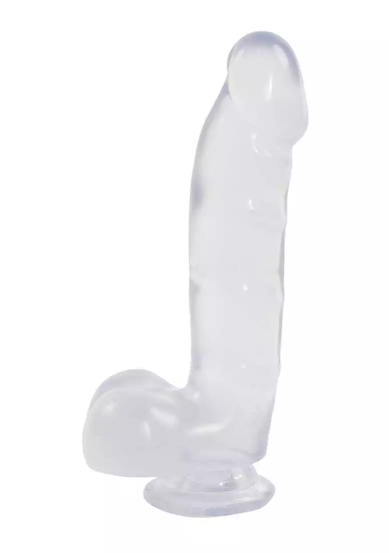 Satisfy your hunger for pleasure with this amazing 6 Jelly Jewels with Suction Cup Cock and Balls! Its realistic head and balls will feel amazing while the ridged shaft will send you over the top! It also has a built in suction cup at the base, allowing it to stick on flat surfaces for hands-free action. Available in Ruby, Sapphire, and Diamond.