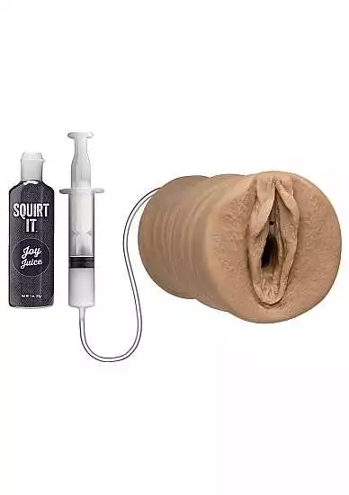 Your wettest and wildest fantasies are now in the palm of your hand with this ultra-lifelike squirting pussy stroker! Made of our incredibly lifelike ULTRASKYNmaterial the Squirt It masturbator squirts on command thanks to an easy-to-fill syringe and a 1 fl. oz. bottle of realistic Joy Juice. Squirt It also features a tight pleasure tunnel with plush internal ribbing for even more pleasure. When you?re ready just squeeze the attached squirt syringe to flood the Squirt It and yourself with sweet pussy juice. Open-ended design makes cleanup a breeze.Each Squirt It includes a 1 fl. oz. bottle of Joy Juice Doc Johnson?s special formulation made specifically for use with our squirting pussy masturbators.