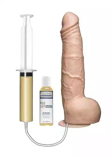 Get ready for piss play pleasure! This full-scale replica is designed to look and feel like a true erect penis and it pisses on command ? thanks to the tropical flavored imitation piss that looks real! The easy-to-use 60ml syringe can be easily refilled with the liquid of your choice. Piss Off is compatible with Vac-U-Lock? harnesses and accessories. Vac-U-Lock? is the worlds first and only patented harness system offering endless possibilities for you to embrace your fantasies. – 10 Full Inches to Indulge Your Piss Play Fantasies – Pisses Anywhere You Want on Command – Incredible Firm Yet Flexible with Realistic Detail – Includes 2 fl. oz. Bottle of Tropical Flavored Imitation Piss – Compatible with Vac-U-Lock? Harnesses & Accessories – Antibacterial Sil-A-Gel? Formula – Phthalate-Free Body-Safe